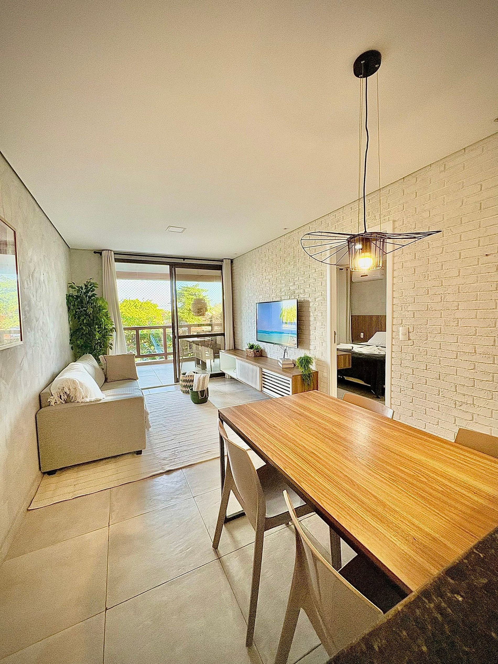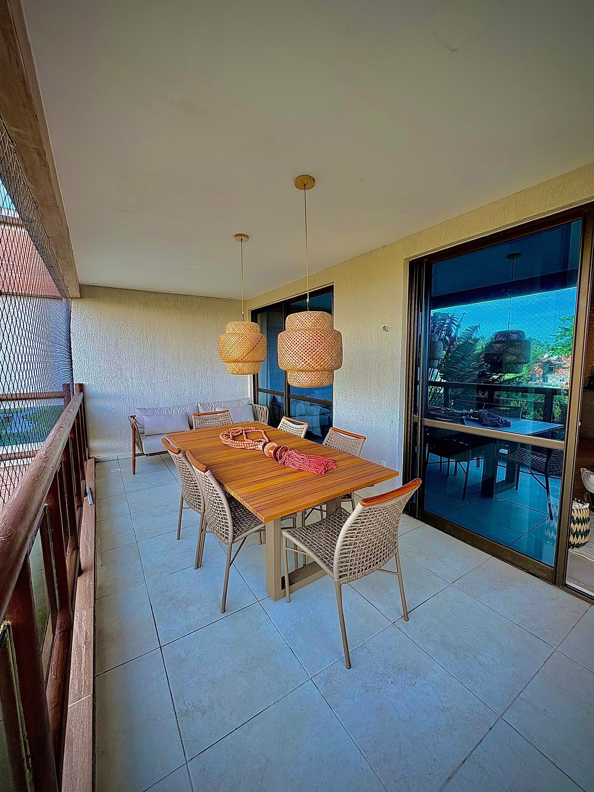 The apartment at Wai Wai Cumbuco has been thoughtfully decorated to provide a cozy and sophisticated environment, perfect for moments of relaxation and leisure. The spacious balcony features an outdoor dining table and comfortable furniture, allowing guests to unwind and enjoy the peaceful atmosphere of the surroundings.